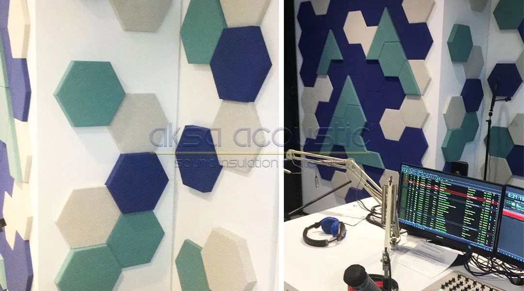 Akustik DüzenlemeAltıgen akustik kumaş kaplı panellerimiz iç mekan akustiğinin iyileştirilmesinde kullanılıp ses yutumu sağlayan akustik panel modeleridir.Ürünümüz güçlü ses emme performansıyla akustik ve estetik ihtiyacınıza cevaptır.